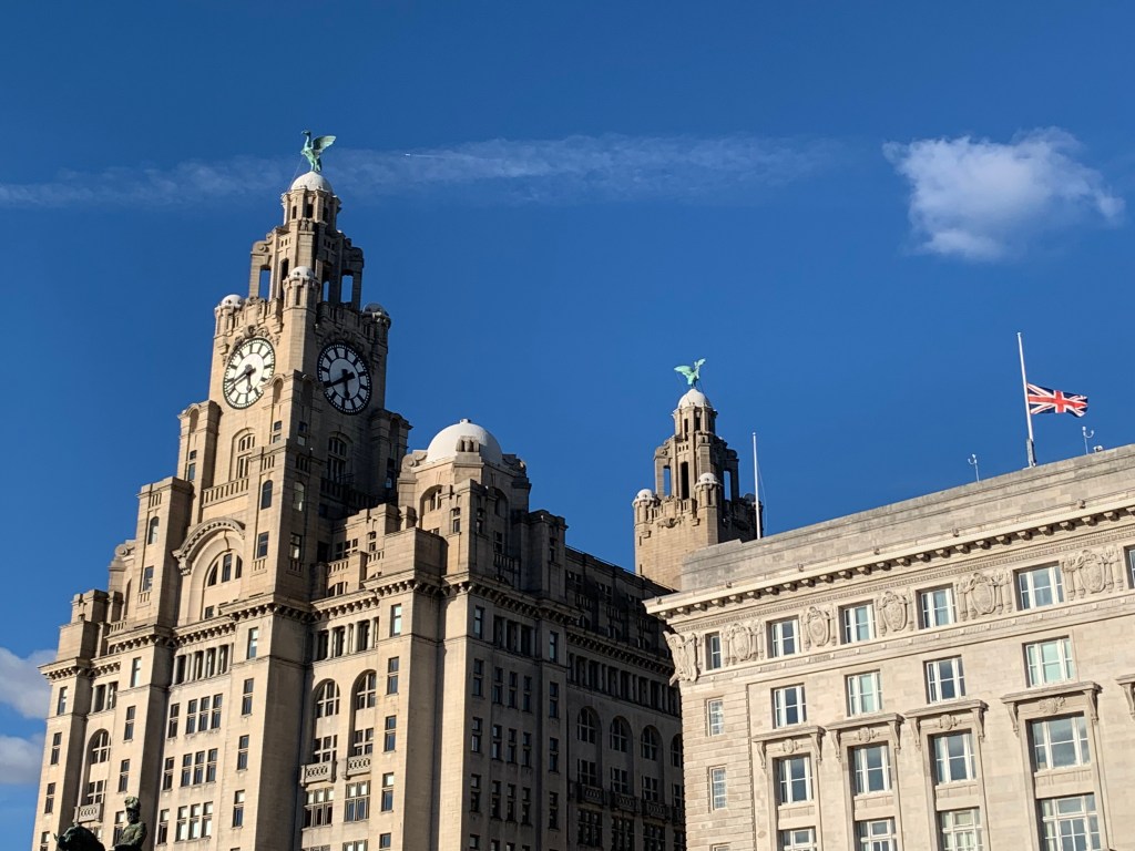 I had been wandering around the city without a specific destination when I turned a corner and caught a glimpse of the Mersey. I changed course immediately and sat down at the waterfront, between the Museum of Liverpool and the Mersey Ferries building, the Liver Building looming in the background. It might have been the jetlag, but I was overcome with emotion at the Liver Building. Get a grip, I thought to myself, it’s just a building, you’ve seen pictures of it before! But something about the birds and their watchful perches facing the river and the city just hit me right in the feels, thinking about how many people had come and gone from the city over time.